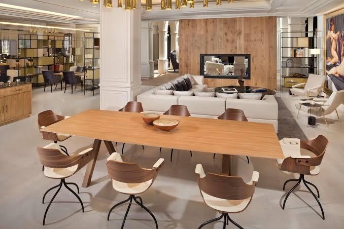 - The interior showcases a blend of classical and contemporary styles, with rich fabrics, marble floors, and elegant furnishings.